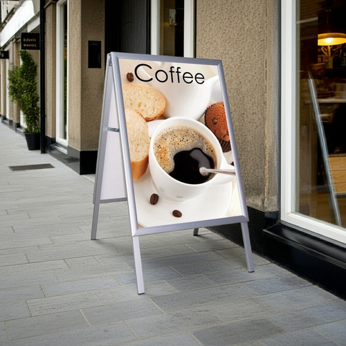22" x 28" Weatherproof A-Frame Sidewalk Sign, Silver with Snap Frame